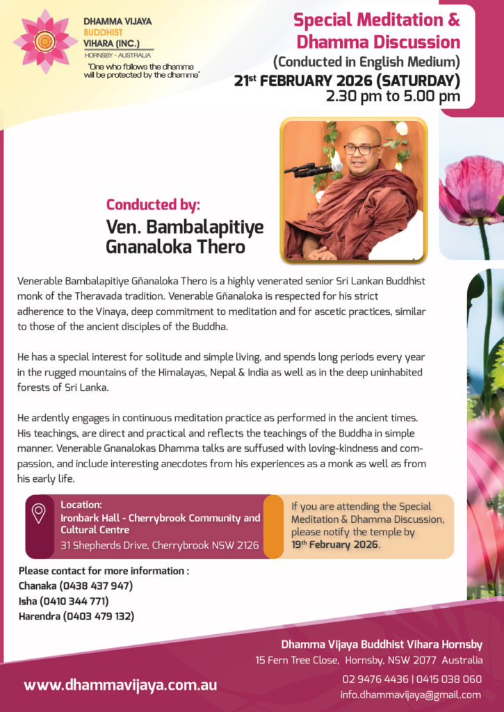 Dhamma Vijaya Buddhist Vihara – 2025 Calendar of Events
